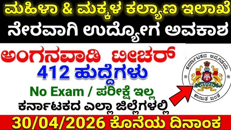 Karnataka Anganwadi Recruitment 2026: 412 Vacancies in Kalaburagi District – No Exam, Apply Now April 26, 2026
